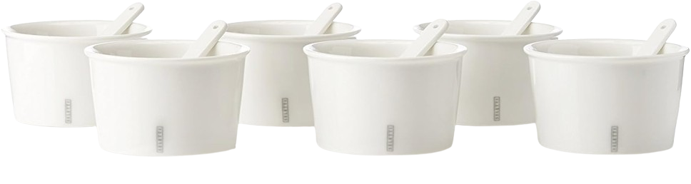 Oltre il rito tradizionale: un gioco di forme storiche e accenti pop. Completa di palettina in porcellana, questa coppetta trasforma un dessert in un'esperienza ironica e raffinata