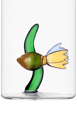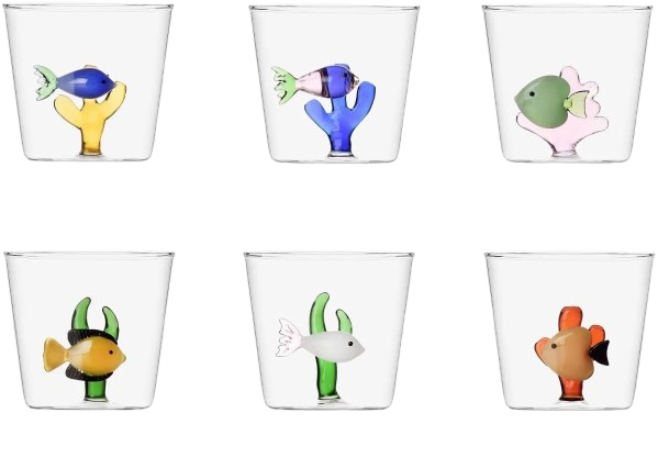 Un acquario in miniatura sulla tua tavola. Bicchieri fatti a mano, dove piccoli dettagli marini trasformano il rito dell'acqua in un momento poetico